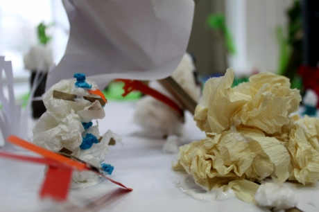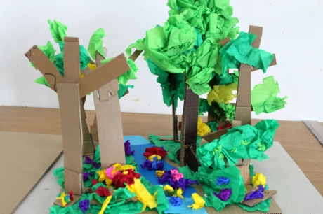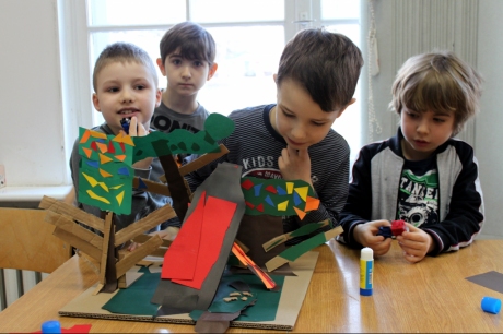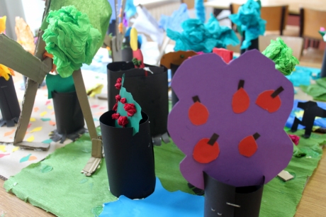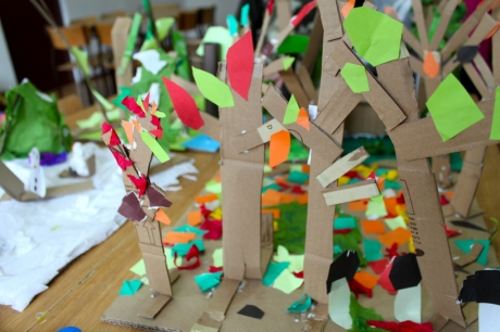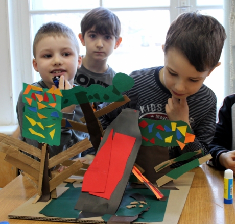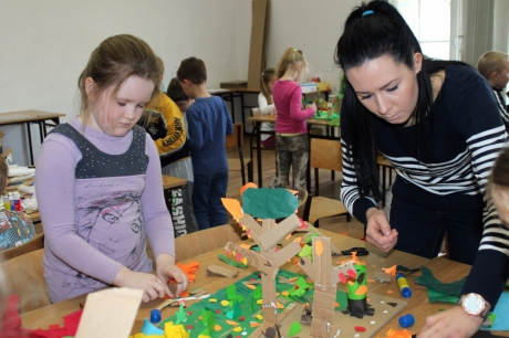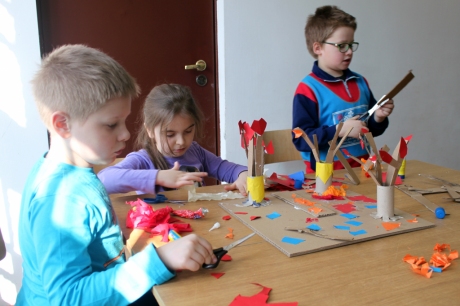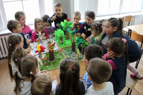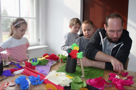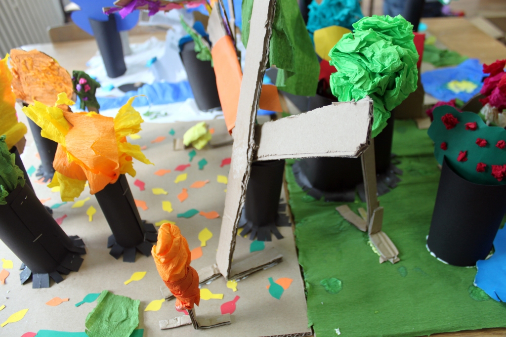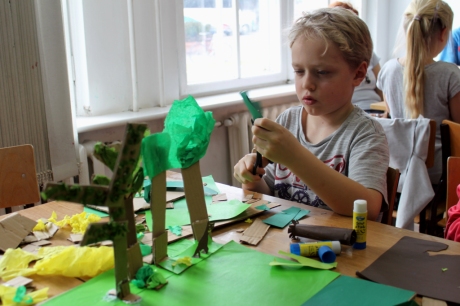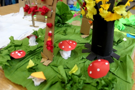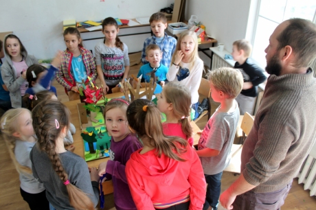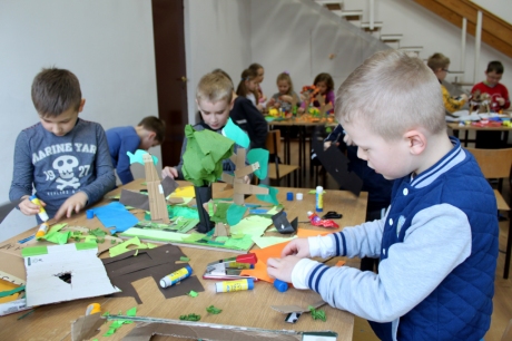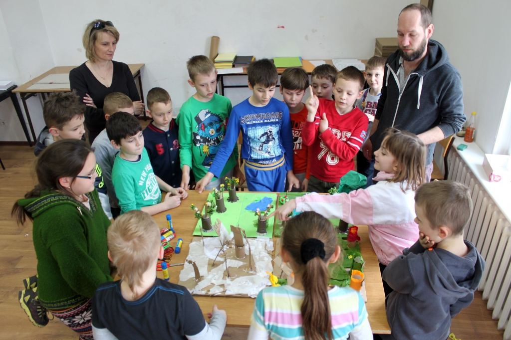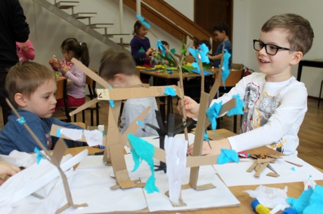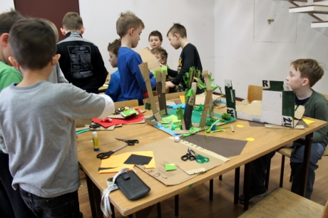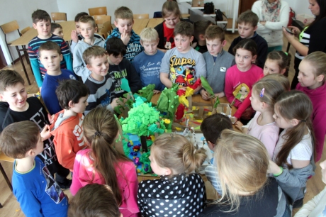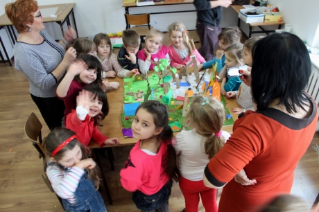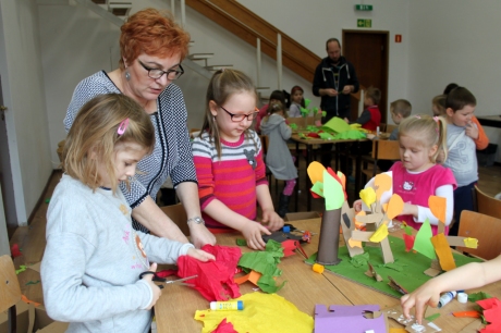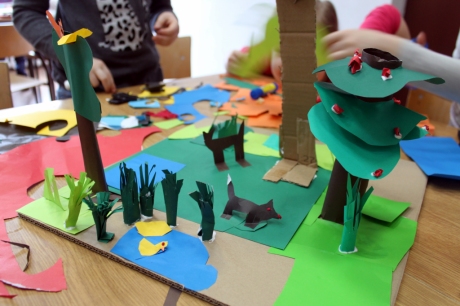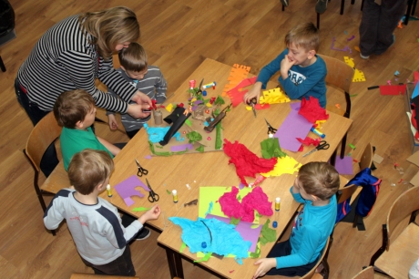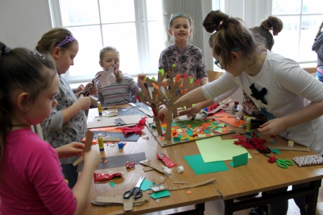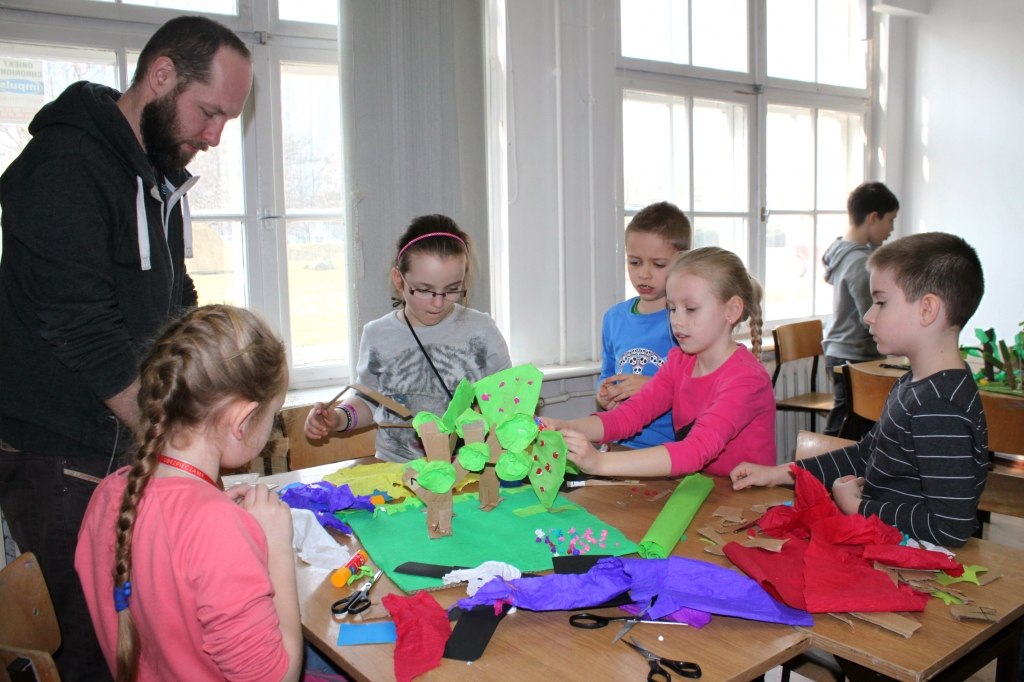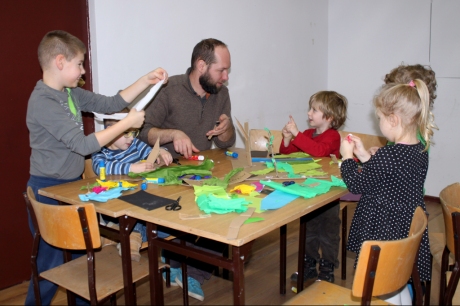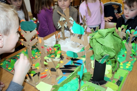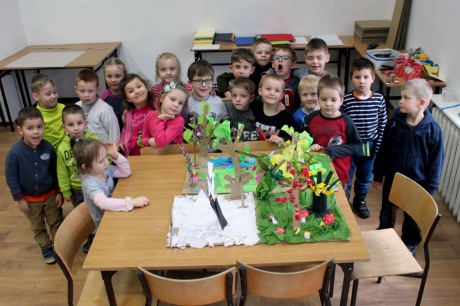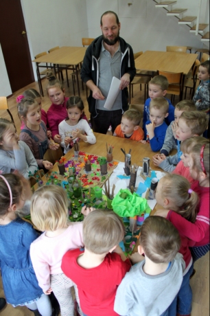 W marcu spotkanie w ramach Warsztatów Sztuki Karuzela pt. "ROK W LESIE" poprowadził Krzysztof Matuszak. Jakie miejsce jest doskonałe, żeby pokazać zmieniające się pory roku? Oczywiście, że las. Z kolorowych papierów, kartonów i bibuły dzieci podczas zajęć tworzyły makietę lasu w 4 porach roku.