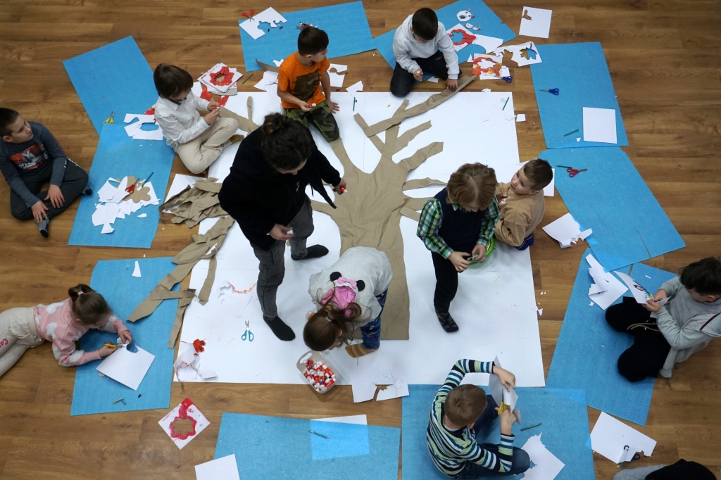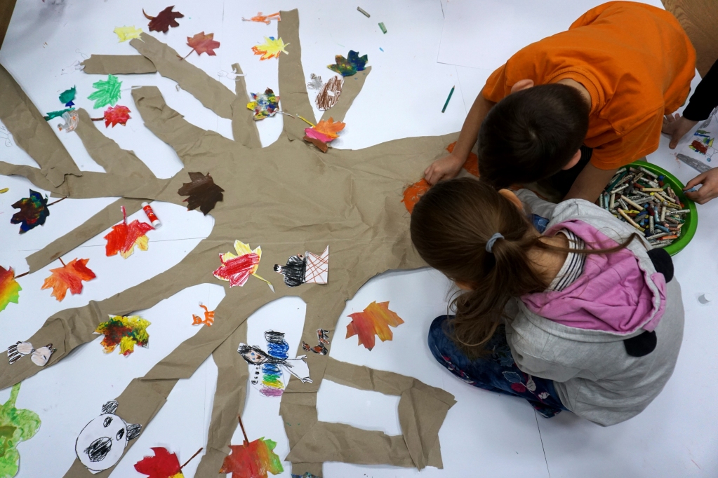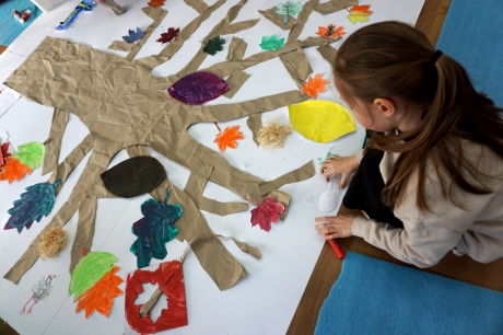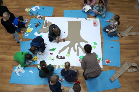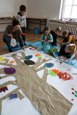 Podczas zajęć plastycznych dzieci stworzyły fantastyczne drzewa. Na gałęziach pojawiły się nie tylko liście, ale także inne, mniej oczywiste rzeczy: huśtawka z kwitnących pnączy, drzwi do tajemniczej krainy, nieznane dotąd gatunki zwierząt i owadów. Zajęcia zaczęły się od kilkuminutowej prezentacji, w której znalazły się dzieła, znane z historii sztuki, przedstawiające drzewa (m.in. Leonarda da Vinci, Vincenta van Gogha, Gustawa Klimta, Stanisława Wyspiańskiego).