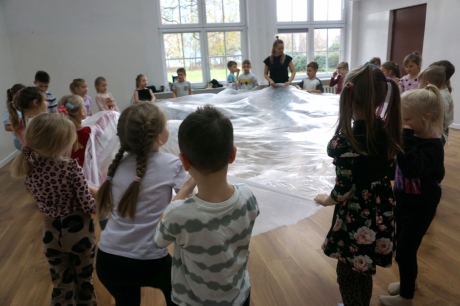 Grudniowe zajęcia były zajęcia dla dzieci pełne radości. Łączyły taniec, jogę, uważność i twórczą zabawę. Dzieci mogły zaczerpnąć radość z naturalnego ruchu i spontanicznego tańca, jednocześnie ucząc się zauważać swoje ciało, jego ułożenie, tempo oraz możliwości. Podczas zajęć wzięły udział w różnorodnych ćwiczeniach i zabawach ruchowych.
