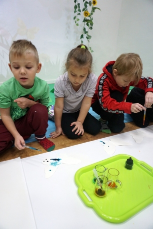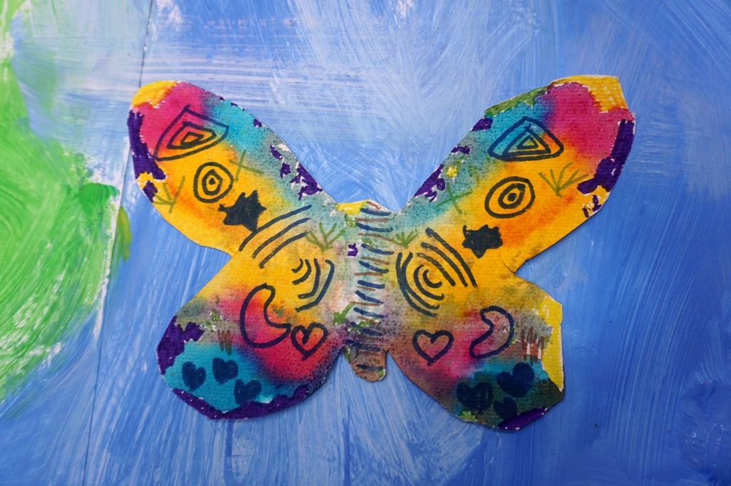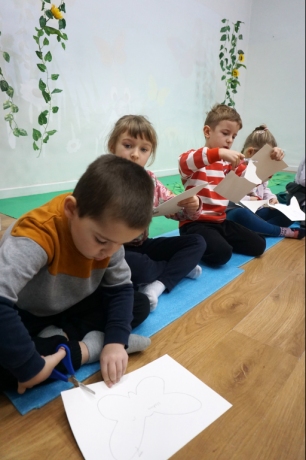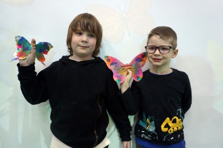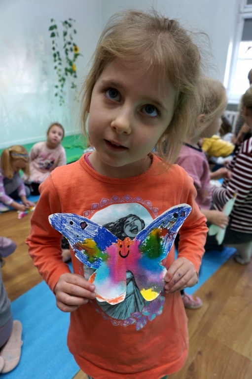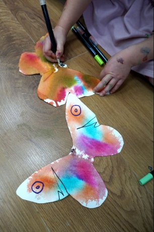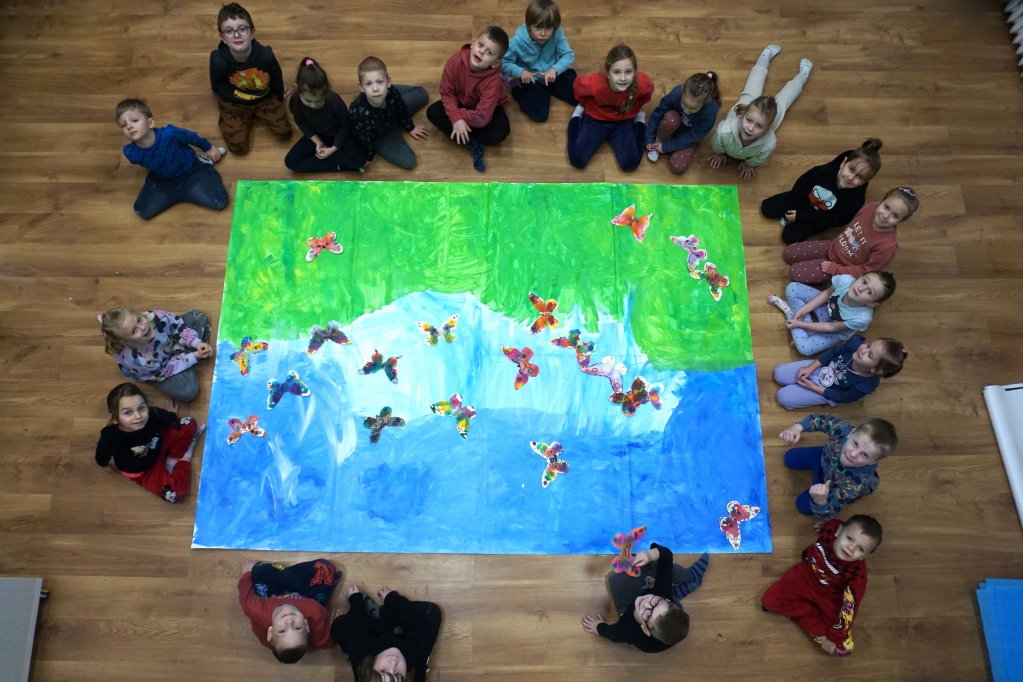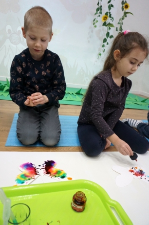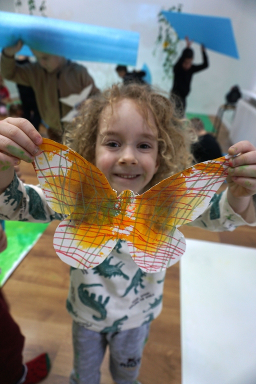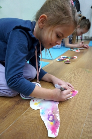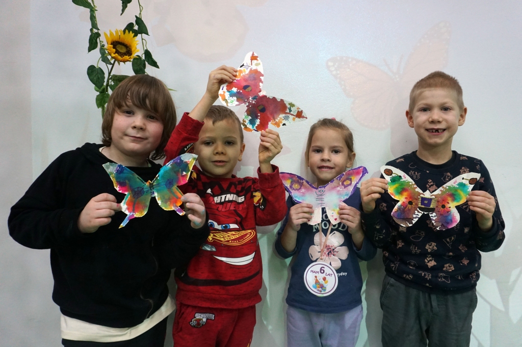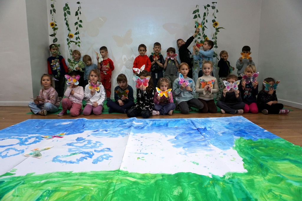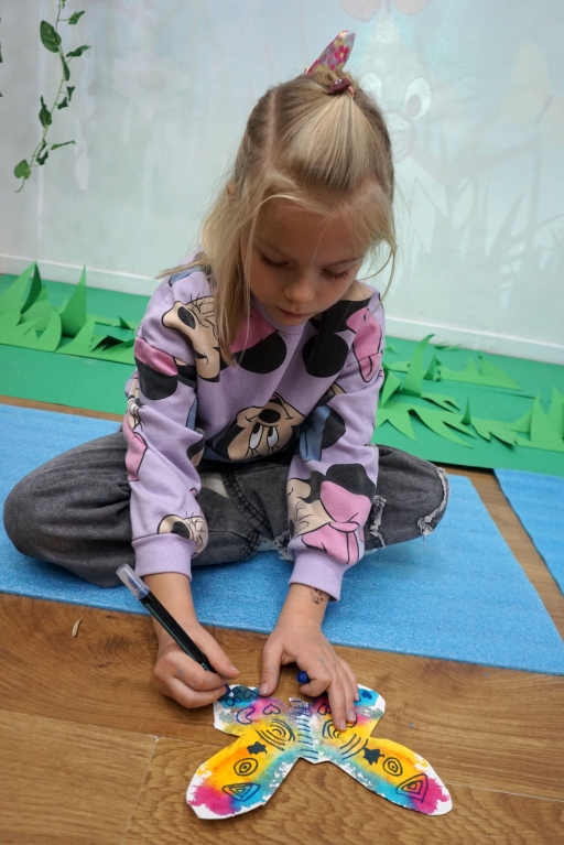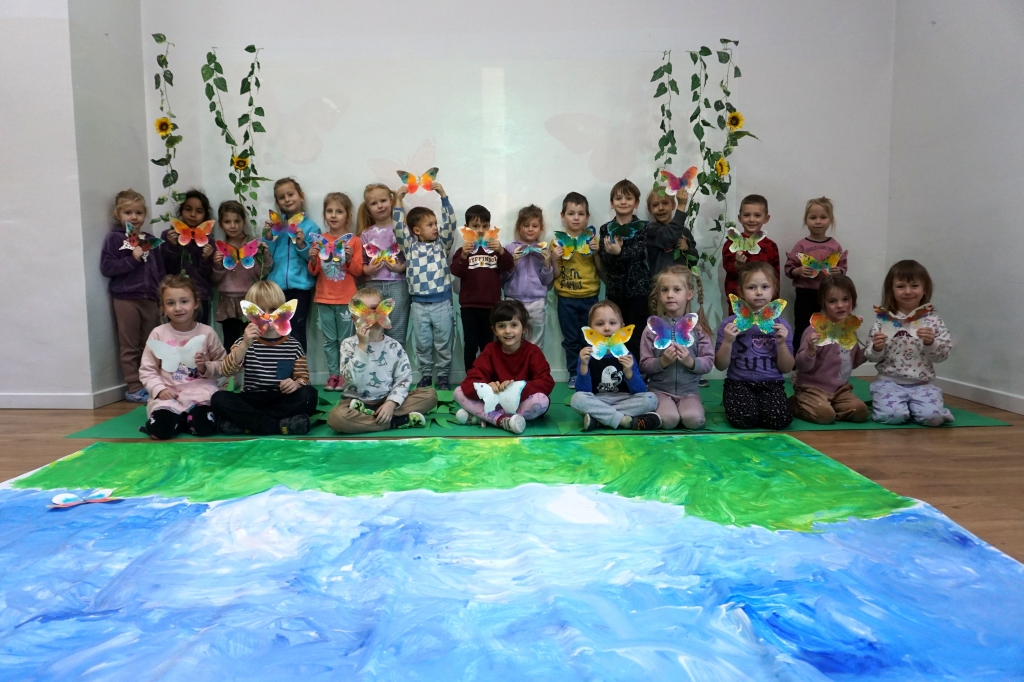 W dniach 17-19.11.2025 odbyły się drugie warsztaty SZTUKO(S)TWORY z ciekawskim stworkiem Florkiem. Dzieci wraz z nim podziwiały kolory motyli na łące. Poznały również etapy rozwoju motyli. Odrysowały z szablonów ich kształty, a następnie tworzyły kolory akwarelą w płynie. Na koniec wszystkie motyle pofrunęły na malarski obraz łąki. W tej edycji SZTUKO(S)TWORY inspirują się fauną, czyli światem zwierząt.