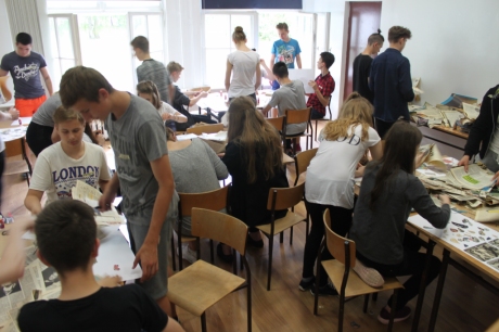 Tematem kolejnych warsztatów w ramach SZTUKowania było „Słowo/obraz”. Tak jak studenci Pracowni Działań Filmowych i Performatywnych  Uniwersytetu Artystycznego w Poznaniu prezentujący swoje prace w galerii BWA (wystawa „Krzyżówka”), próbowaliśmy poszukać relacji między tymi słowami. Do poszukiwań zainspirował nas film/animacja Mateusza Fabisia pt. „Drżące ciała”, który w zabawny sposób komentuje naszą codzienność, pokazując ważne słowa/tematy w prześmiewczej formie.