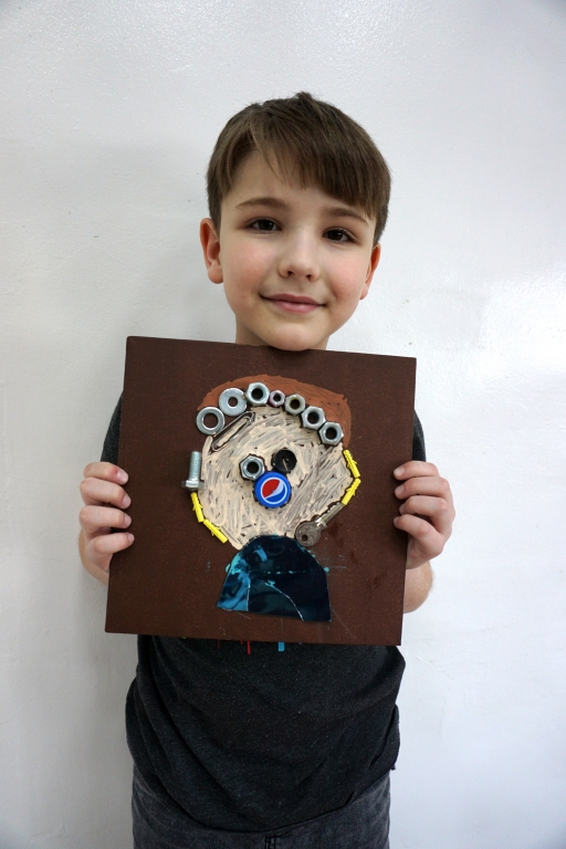 Podczas kolejnych warsztatów SZTUKowanie dzieci zwiedziły stałą kolekcję prac Władysława Hasiora. Poznały twórczość tego wielkiego artysty i termin asamblaż. Następnie z różnych materiałów i przedmiotów stworzyły swoje asamblażowe autoportrety inspirując się pracą Hasiora pt. "Autoportret z chandrą".