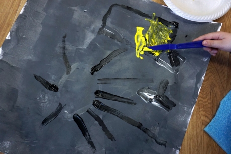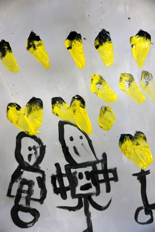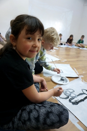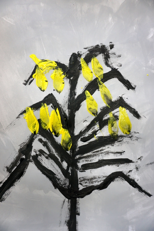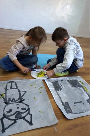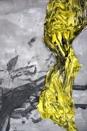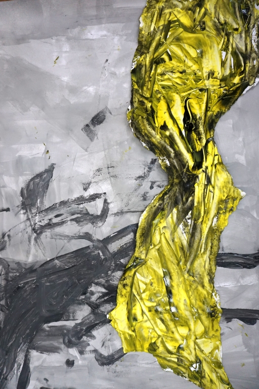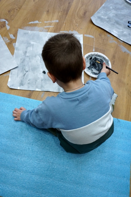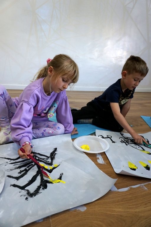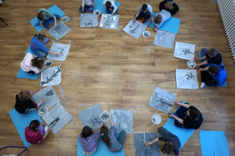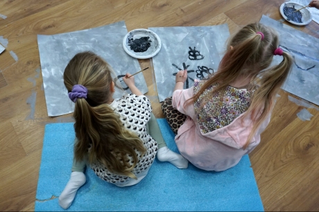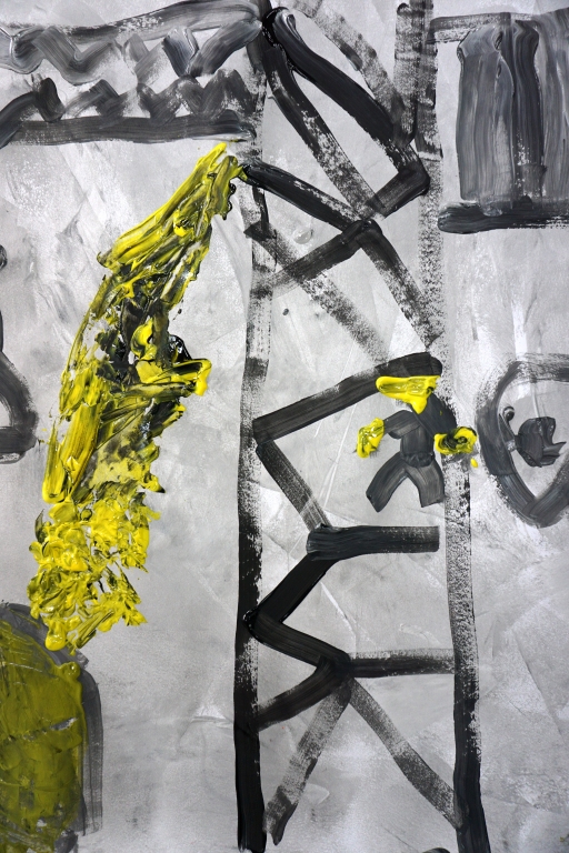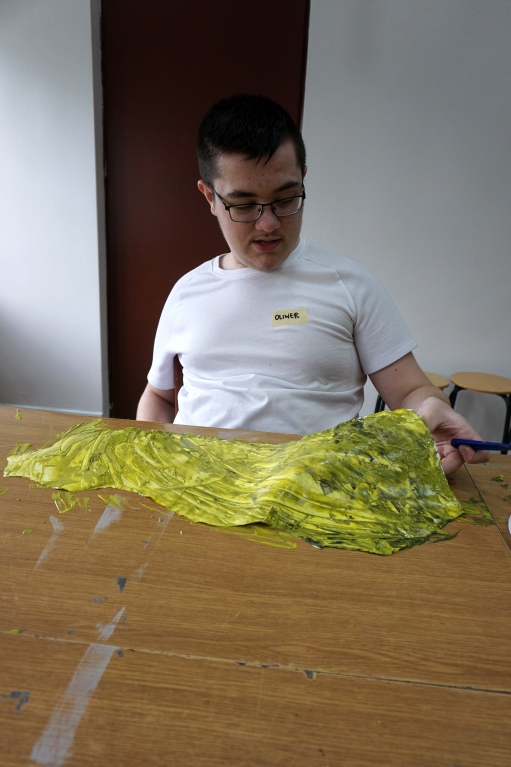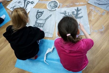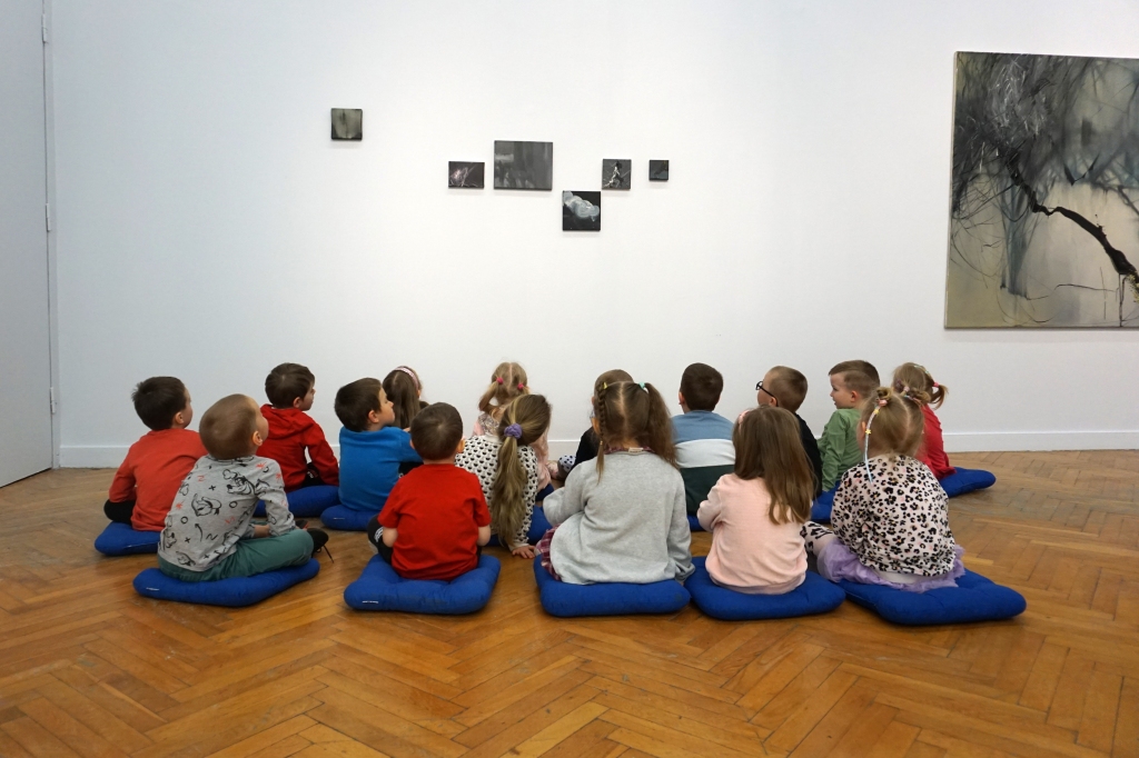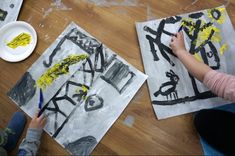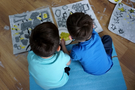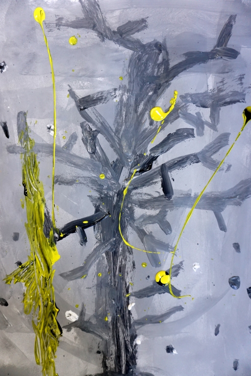 Podczas kolejnych warsztatów SZTUKowanie uczestnicy zwiedzili wystawę Andrzeja Bembenka. Poznali termin abstrakcja, malarstwo ekspresjonistyczne, impast oraz akcent. Następnie stworzyli swoje dzieła malarskie przedstawiające linearne fragmenty naszeg krajobrazu: drzewa, linie wysokiego napięcia, żurawie, mosty, trakcje. Używali do tego celu różnych narzędzi malarskich: wałka, pędzla i szpachelki, którą stworzyli impastowy akcent na obrazie.