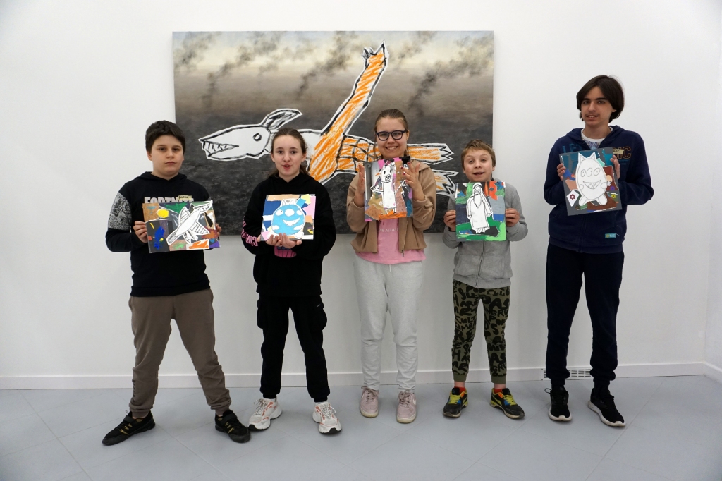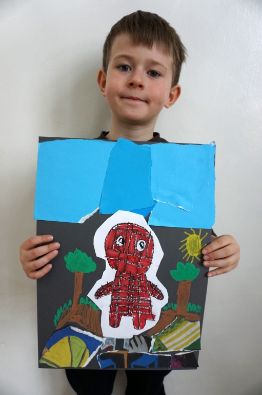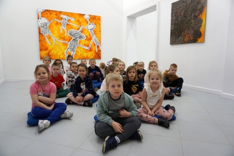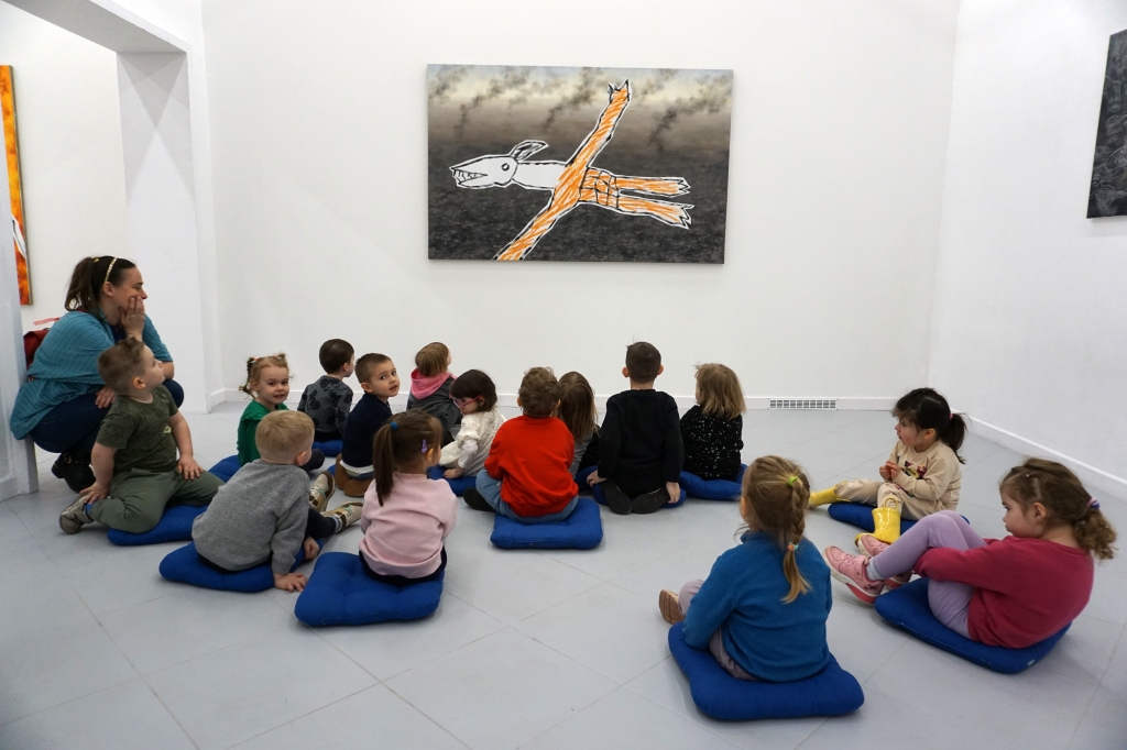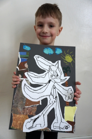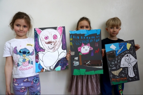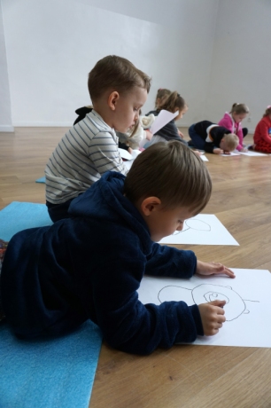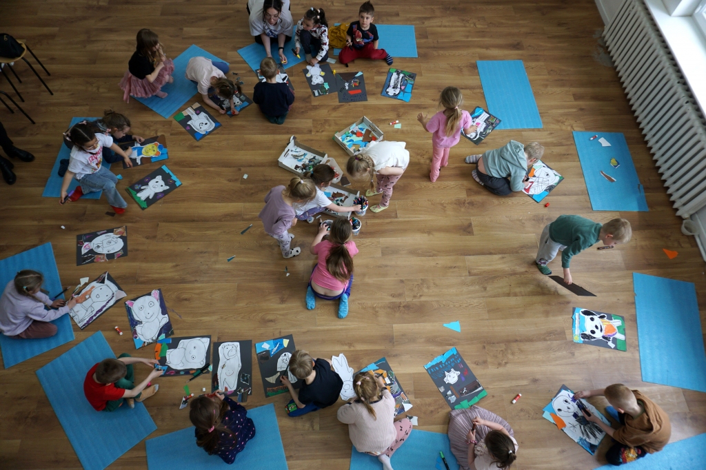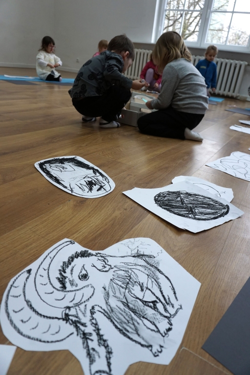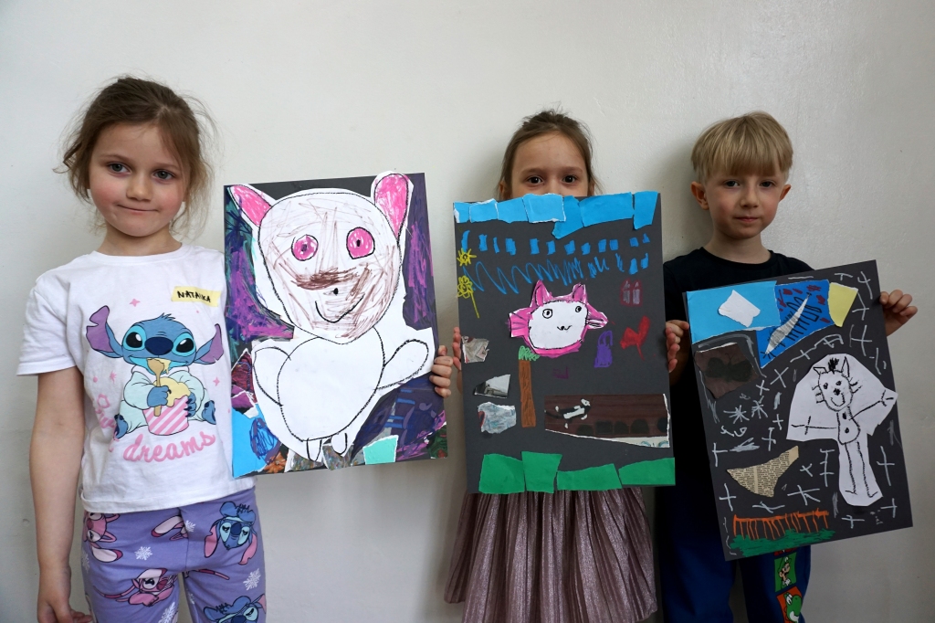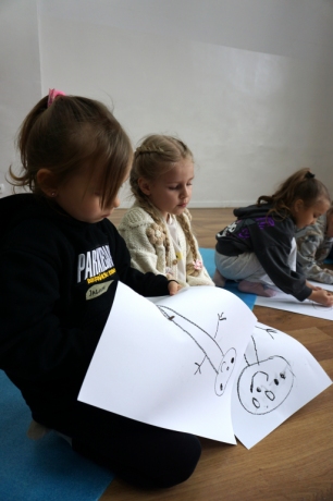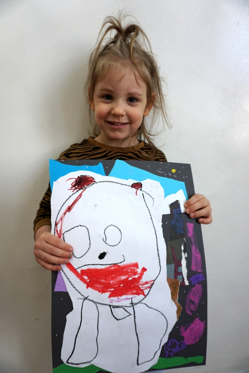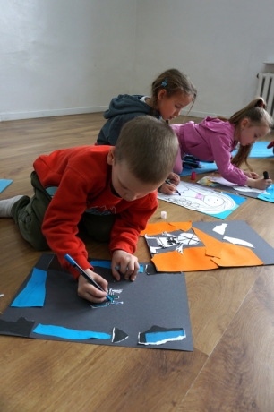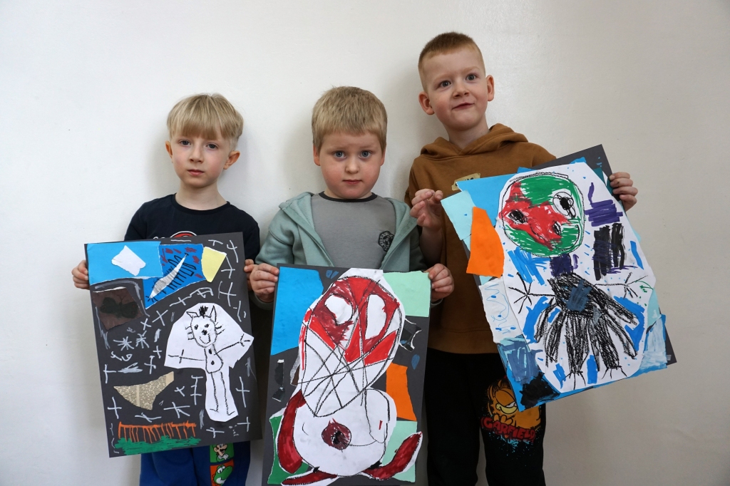 Wystawa Jakuba Woźnicy stała się inspiracją do kolejnych warsztatów SZTUKowanie. Dzieci zwiedziły wystawę artysty pt. "Otwarte oczy schną". Dowiedziały się o metodach pracy, technikach i tematach prac twórcy. Następnie narysowały swoje ulubione postaci z bajek i filmów przyklejając je na tło z wydzieranych papierów. Powstały niesamowite wielobarwne kolaże nawiązujące do prac Jakuba Woźnicy.
