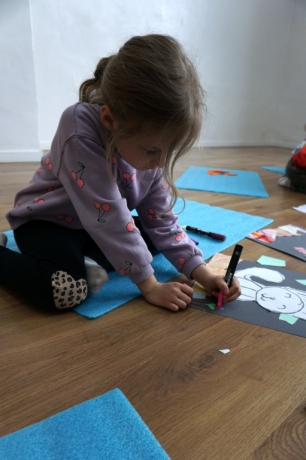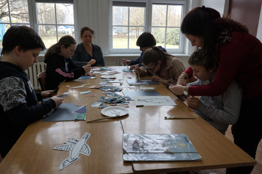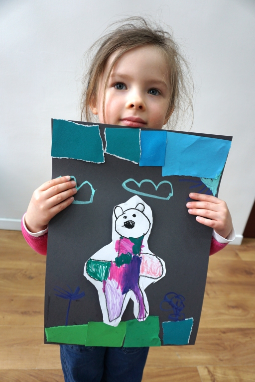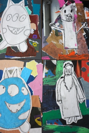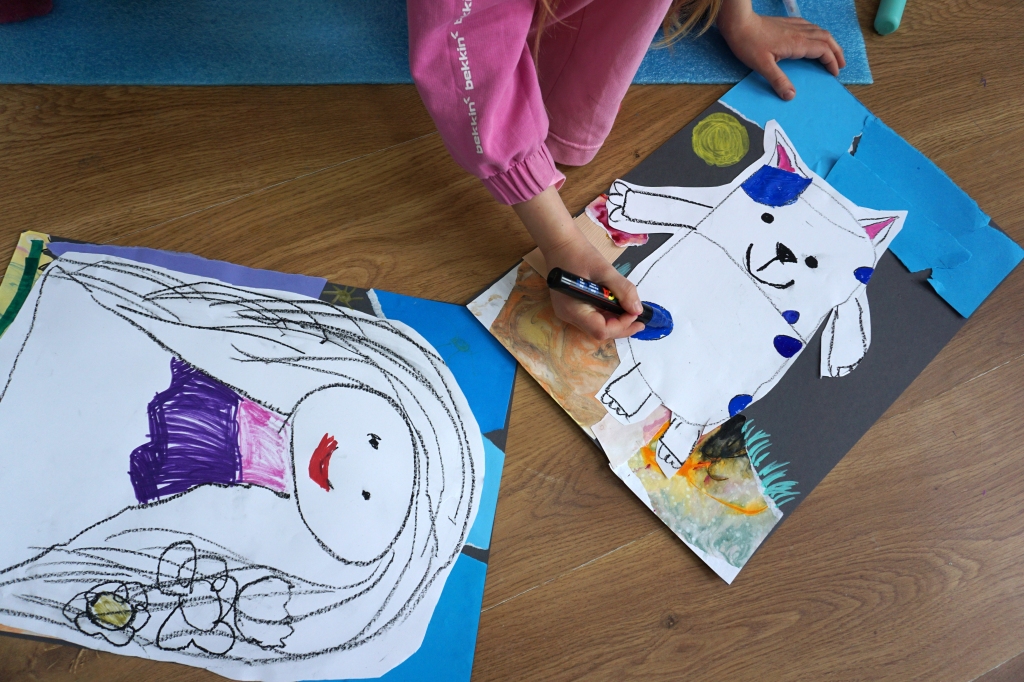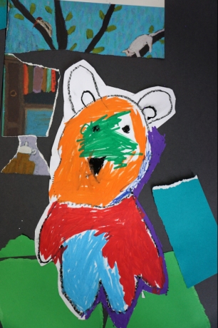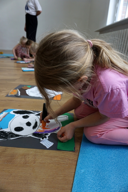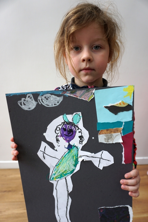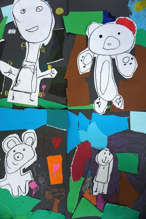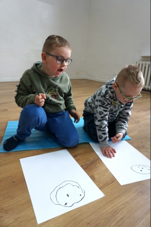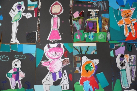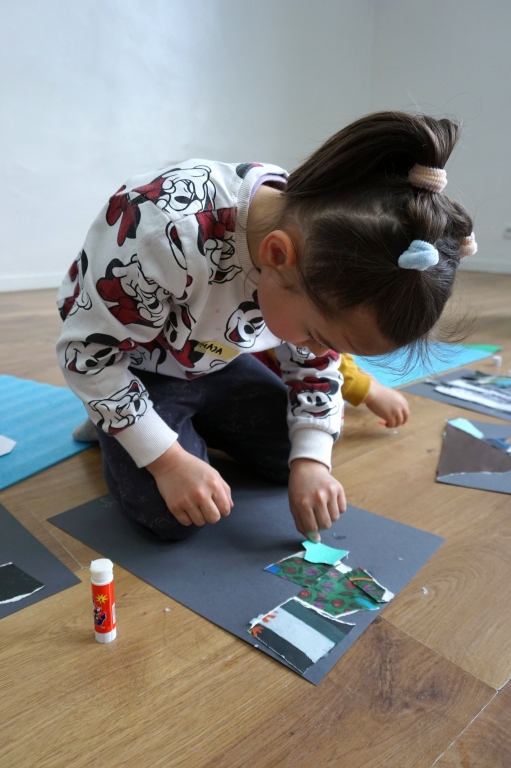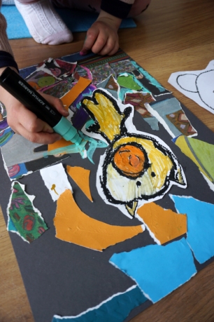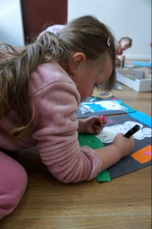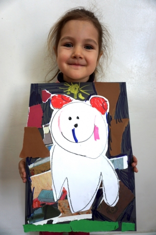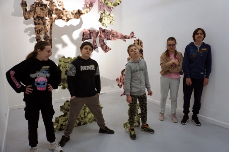 Wystawa Jakuba Woźnicy stała się inspiracją do kolejnych warsztatów SZTUKowanie. Dzieci zwiedziły wystawę artysty pt. "Otwarte oczy schną". Dowiedziały się o metodach pracy, technikach i tematach prac twórcy. Następnie narysowały swoje ulubione postaci z bajek i filmów przyklejając je na tło z wydzieranych papierów. Powstały niesamowite wielobarwne kolaże nawiązujące do prac Jakuba Woźnicy.