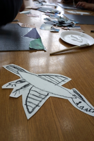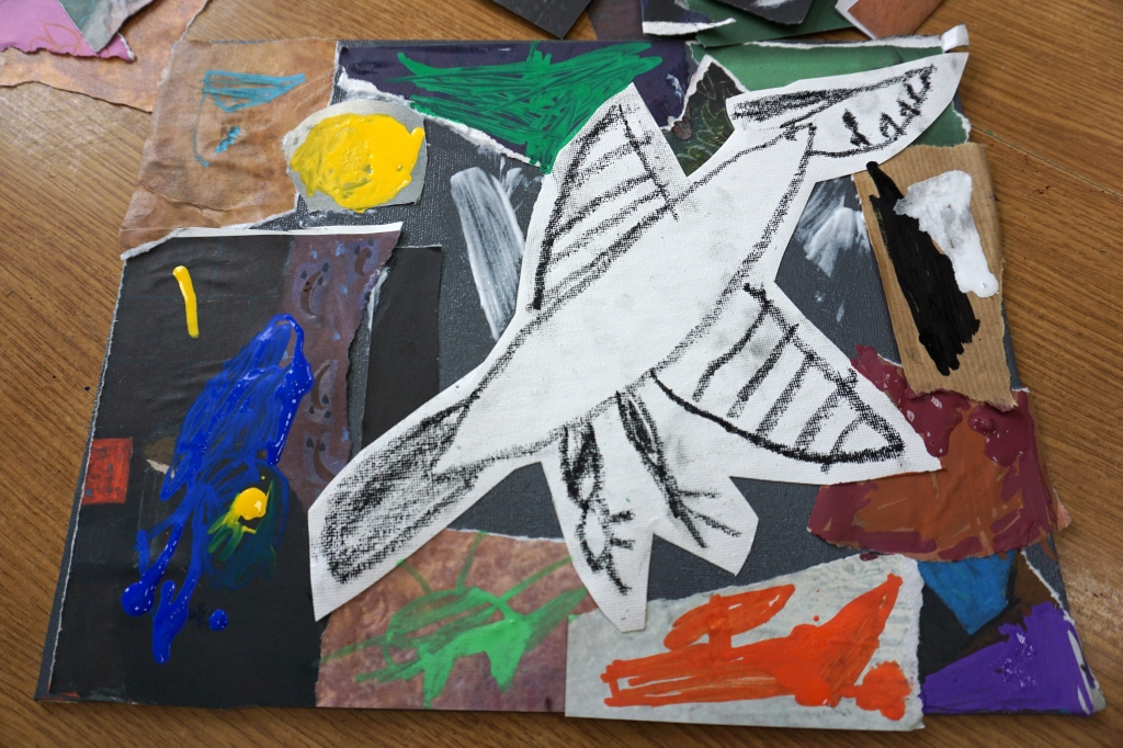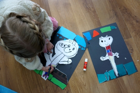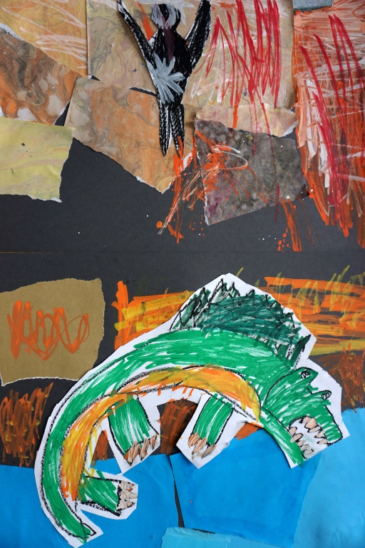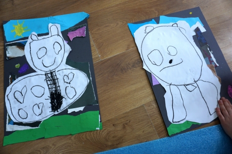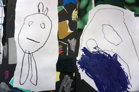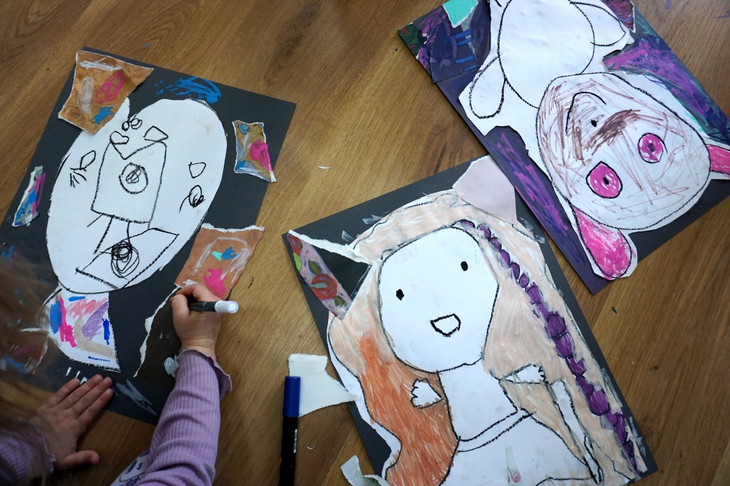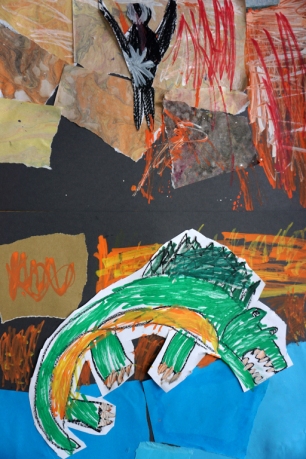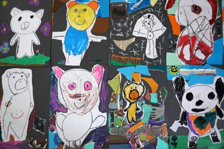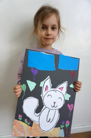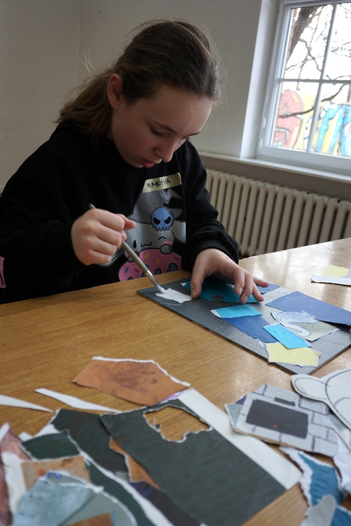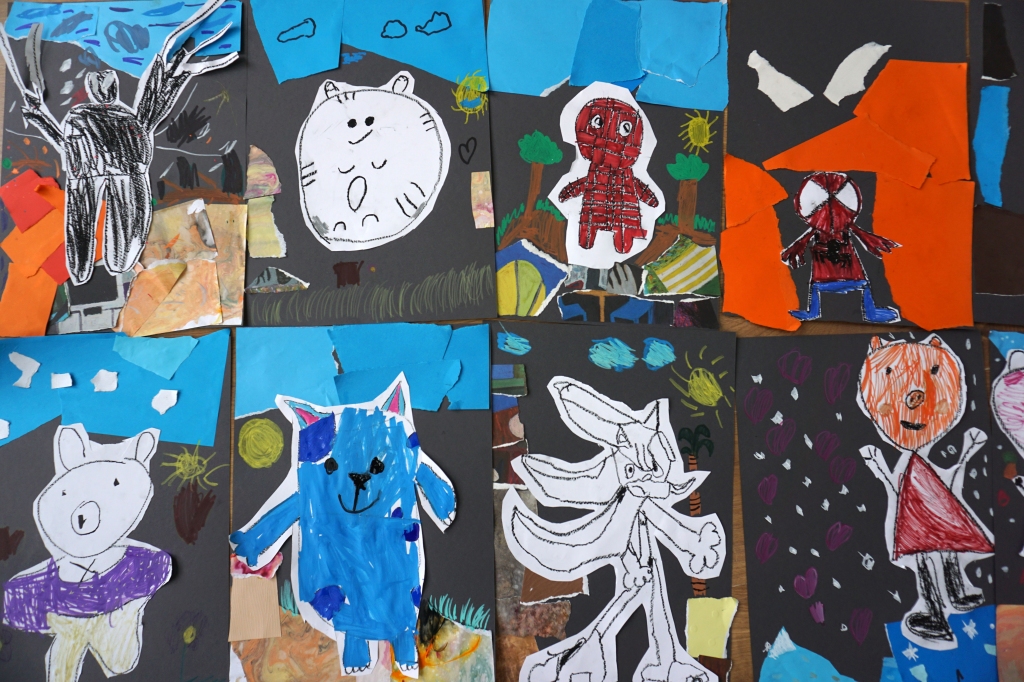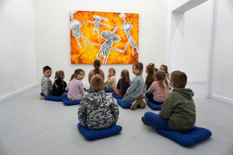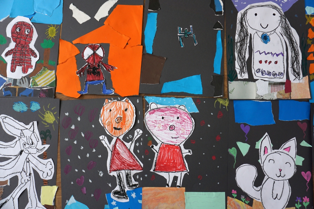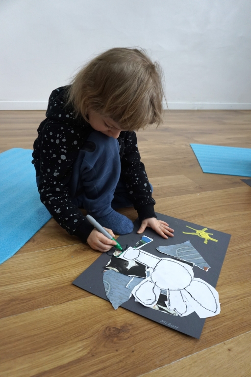 Wystawa Jakuba Woźnicy stała się inspiracją do kolejnych warsztatów SZTUKowanie. Dzieci zwiedziły wystawę artysty pt. "Otwarte oczy schną". Dowiedziały się o metodach pracy, technikach i tematach prac twórcy. Następnie narysowały swoje ulubione postaci z bajek i filmów przyklejając je na tło z wydzieranych papierów. Powstały niesamowite wielobarwne kolaże nawiązujące do prac Jakuba Woźnicy.