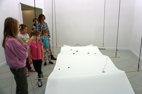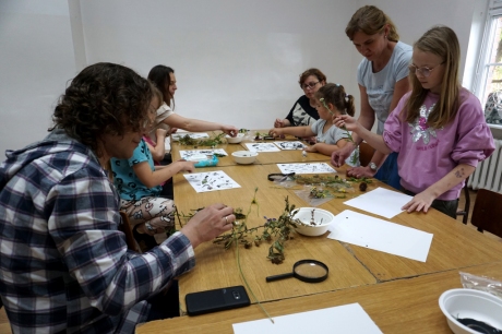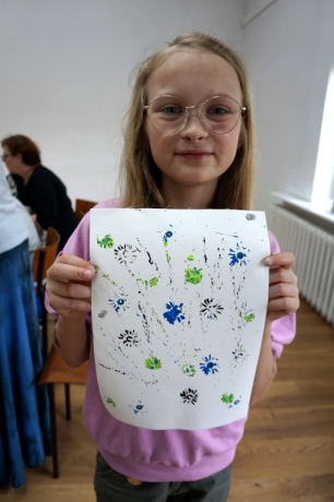 Na ostatnich warsztatach przed wakacjami spotkaliśmy się na wystawie Asef–Burckhardt pt. "Mother - burn". Dzieci wraz z rodzicami obejrzeli wystawę inspirowaną osadą/społecznością Sea Ranch w Californii/USA. Następnie udali się przed i za Miejski Ośrodek Sztuki doświadczając przestrzeni i natury, poszukując "skarbów" i ciekawych artefaktów. Następnie wykorzystując te przedmioty/rośliny stworzyły obrazy tuszem na papierze i farbą akrylową na płótnie.