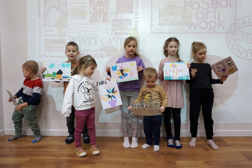 Pierwsze Twórcze cudaki w tym roku dotyczyły mail artu czyli sztuki poczty, nurtu w sztuce z lat 70-tych XX w., sprzed ery internetu. Artyści, głównie konceptualni wysyłali pocztą swoje kartki pocztowe, telegramy czy inne formy stworzone przez siebie. Dzieci poznały twórczość japońskiego artysty On Kawary, a następnie stworzyły swoje własne znaczki pocztowe i kartki pocztowe, które zostały przez nas wysłane pocztą pod wskazane adresy bliskich dzieciom osób.