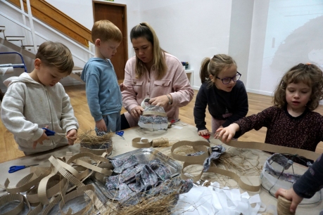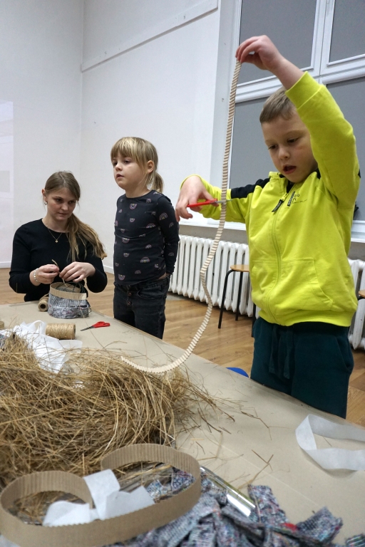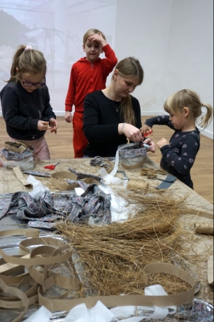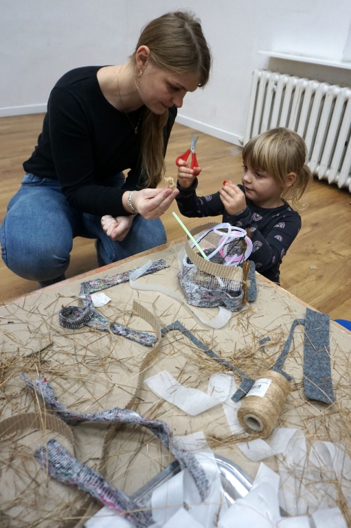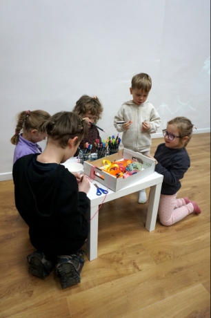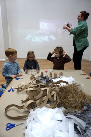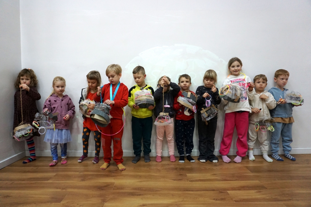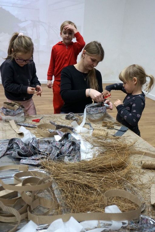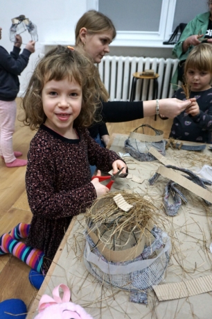 Podczas kolejnych warsztatów rodzinnych Twórcze cudaki dzieci poznały włoskiego artystę Mario Merza, który był jednym z ważniejszych przedstawicieli Sztuki biednej/arte povera w latach 60-tych XX w. Artysta od lat 60-tych tworzył symboliczne igloo wykorzystując różne proste materiały, często nawiązujące do miejsca wystaw i kontekstu społeczno-politycznego. Swoje igloo często przebijał neonami. Dzieci podczas zajęć również wykonały swoje igloo z watoliny, fliseliny, tektury i siana. Neony natomiast zastąpiły świecącymi patyczkami, które sprawiły uczestnikom najwięcej radości. Dziękujemy za kolejne twórcze spotkanie.