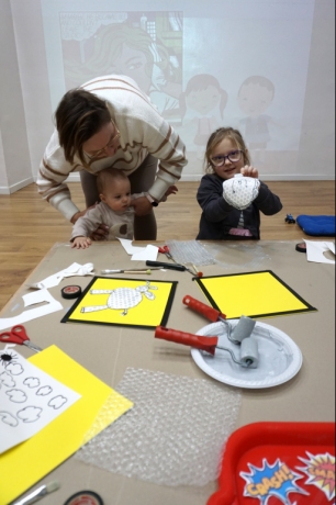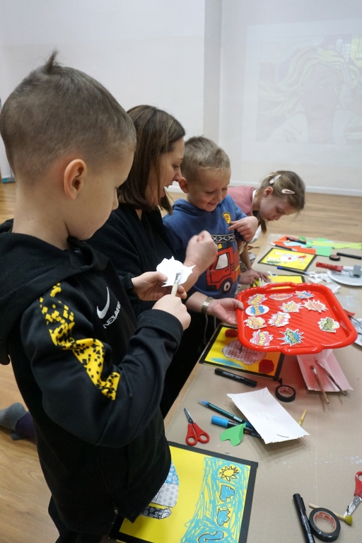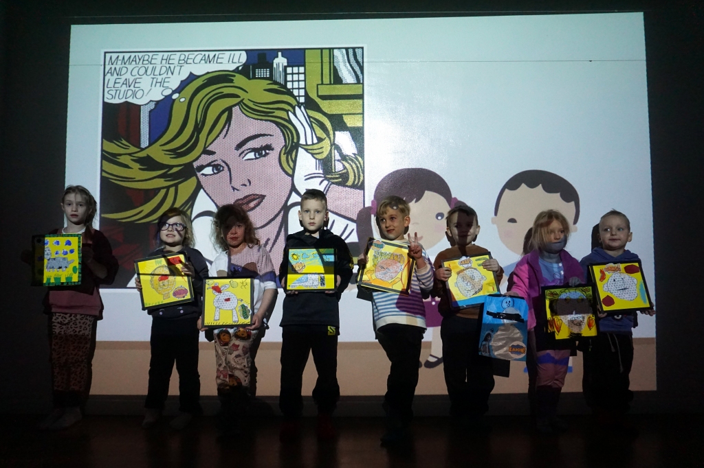 Podczas pierwszych w tym roku warsztatów rodzinnych Twórcze cudaki dzieci poznały amerykańskiego artystę Roya Lichtensteina. Artysta tworzył swoje obrazy w stylistyce komiksu, często przemalowując fragmenty popularnych komiksów. Stał się jednym z głównych przedstawicieli amerykańskiego pop artu.