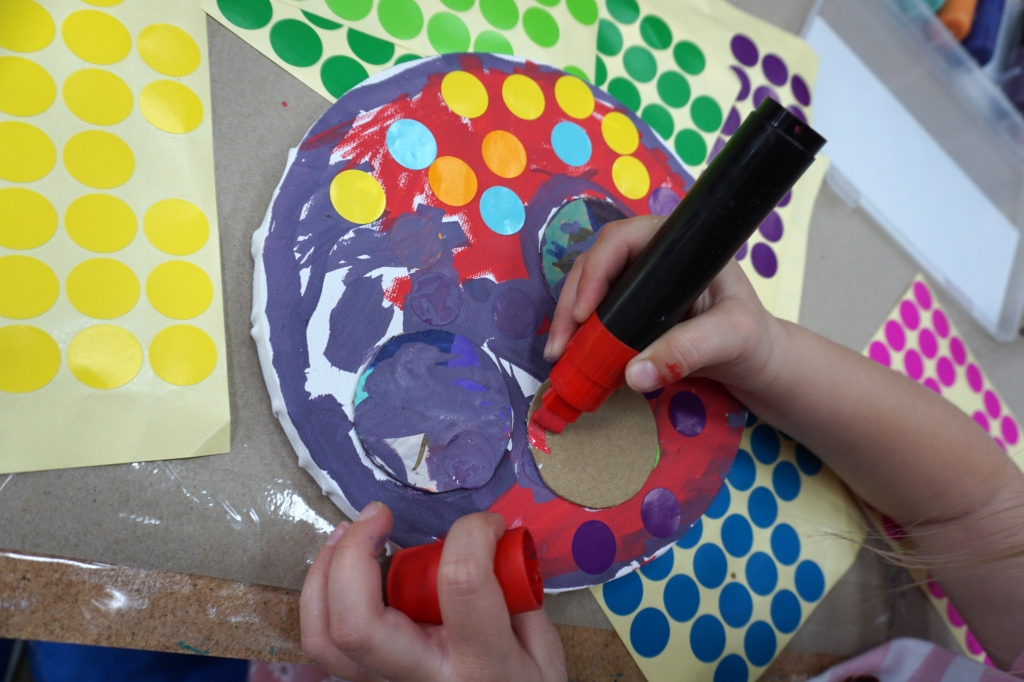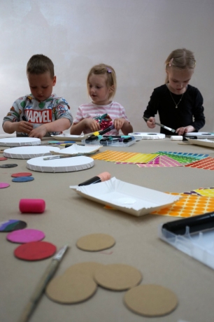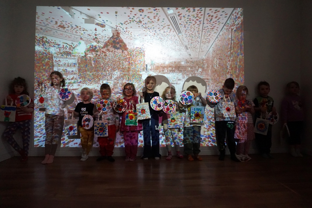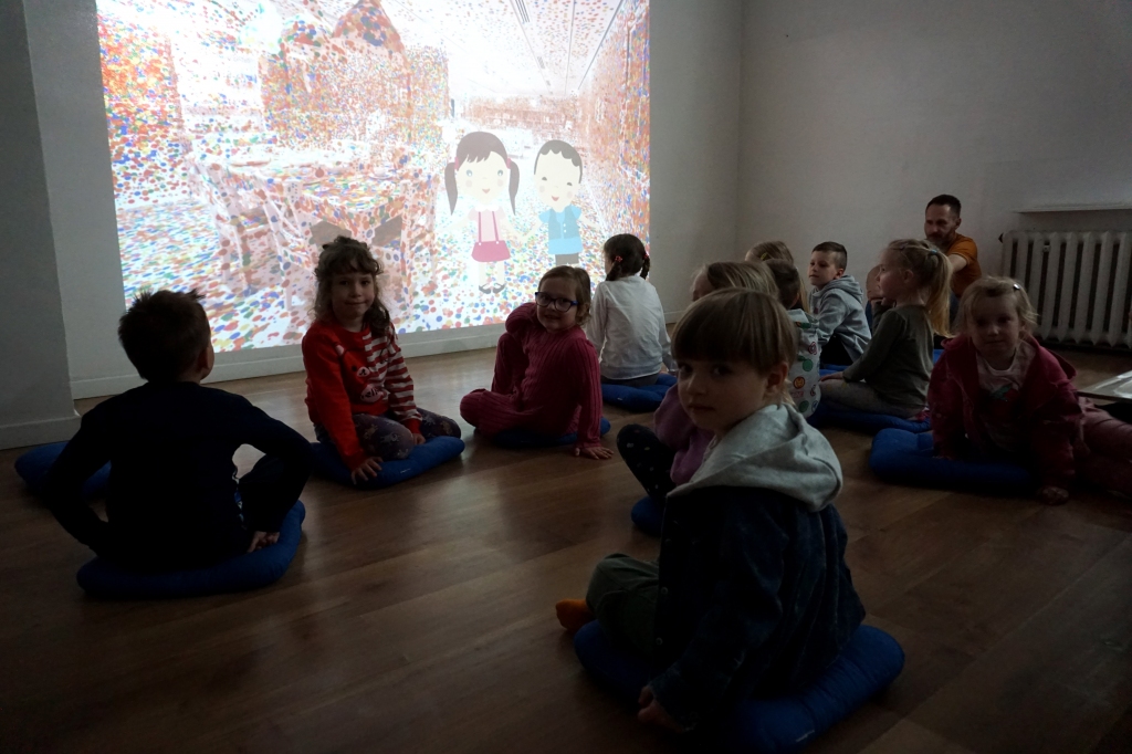 Podczas kolejnych Twórczych cudaków dzieci poznały twórczość Yayoi Kusamy. Wymyśleni bohaterowie zajęć Basia i Kaziu zabrali uczestników na wystawę do Ludwig Museum do Kolonii. Uczestnicy zobaczyli wnętrza pełne obiektów pokrytych różnokolorowymi kropkami. Następnie stworzyli swoje okrągłe obrazy, których głównym bohaterem były kropki, koła i grochy. Na zajęciach dzieci wykonały również małe torby bawełniane, na których kropki zmieniły się w pająki, kotki, jabłuszka, kwiatki i czarne dziury.