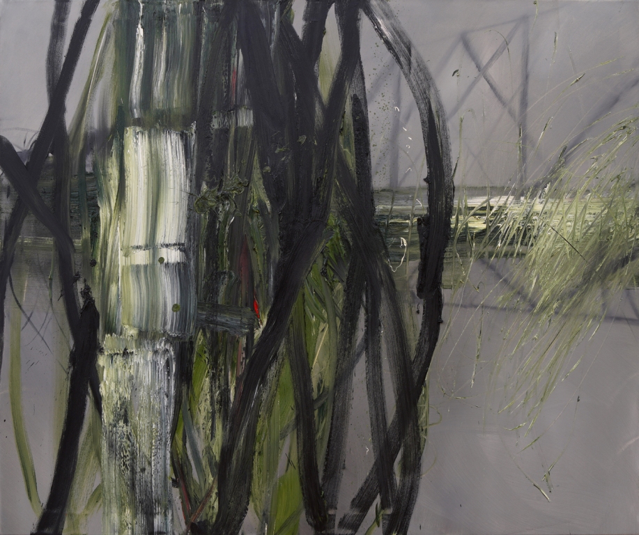 Jarmuscha, głównie za sprawą sceny nad jeziorem, którą przywołałem. Bembenek pracujący w zupełnie innych realiach, innym czasie oraz przede wszystkim w innym medium, jednak posługuje się strategią, którą można porównać ze sposobem pracy Jarmuscha. Na czym to polega? W głównej mierze na tym, że to, co ostatecznie jest rozstrzygnięte na obrazach nie jest tym, czym może się z pozoru wydawać. Nie mam tu myśli sytuacji, kiedy malarz nadaje rozbudowane literacko tytuły swoim pracom, których forma jest zazwyczaj niedookreślona, żeby nie powiedzieć zamazana. Otwiera się w ten sposób pewien „korytarz interpretacyjny” ale jestem zdania, że nie na tym polega swoisty fenomen obrazów Bembenka. Istotniejszym jest to, co i jak on maluje. Od ponad dekady głównym motywem obrazów są trakcje kolejowe. Zatem można powiedzieć, że są to w nieoczywistym tego pojęcia rozumieniu ale pejzaże. Te powstałe najwcześniej były bardzo subtelne w wyrazie. Zamazane ale jednak rozpoznawalne elementy trakcji majaczyły jakby w szaro-błękitnej mgle, która była akcentowana pojedynczymi uderzeniami impastu. Z czasem ten rodzaj interwencji w pierwotną strukturę obrazu narasta. Bembenek coraz mniej dba o czytelność motywu trakcji, bardziej zajmuje go to, w jaki sposób przekształcać i modyfikować owe malarskie interwencje. Wydaje mi się, że właśnie od tego momentu można mówić o swoistej dojrzałości malarskiej Bembenka. Punkt wyjścia pozostaje istotny ale najważniejszym aspektem Jego aktywności będzie uzyskiwanie coraz to bardziej zróżnicowanych brzmień materii malarskiej. Obrazy pokazywane na wystawie w MOS w Gorzowie Wielkopolskim pochodzą głównie z dwóch ostatnich lat. Ewolucja środków malarskich jest tu uwidoczniona w bardzo sugestywny sposób. Nasycenie waloru oraz wprowadzenie intensywnych barw już tylko w bardzo luźny sposób ewokują skojarzenia z motywem pejzażu. Ilość i możliwości wyrazowe poszczególnych obrazów kojarzą mi się z rozwojem motywów muzycznych w muzyce Beli Bartoka czy Dymitra Szostakowicza. Obywaj modernistyczni kompozytorzy posługiwali się techniką przetworzenia i uzyskiwali efekt niekończącej się wariacji na temat pierwotnie opracowanego tematu muzycznego. Andrzej Bembenek, skądinąd adorujący tych muzyków, swoje kolejne warianty trakcji maluje na formatach o różnej skali. Są prace zupełnie filigranowe, średniej wielkości i wreszcie te wielkogabarytowe. I w każdej okoliczności, czy to na małym czy na większym formacie malarz z równą uwagą i stosownie dozowaną ekspresją wykonawczą dobiera środki wyrazowe. Ten arsenał zróżnicowanych formatów ostatecznie służy nie tylko przeglądowi możliwości, w jakich może się wydarzyć każdy kolejny obraz. Pozwala w niebanalny sposób budować dramaturgię wystawienniczą, jak choćby bieżący pokaz w MOS w Gorzowie Wielkopolskim. Chyba nie ma nic bardziej monotonnego jak układ obrazów w jednym formacie, usytuowanych na ścianie w formie fryzu i Bembenek to wie. Każda wystawa Jego prac w zależności od warunków przestrzeni w jakiej się odbędzie stwarza kolejne warianty ekspozycyjne. Zaryzykowałbym określenie, że Bembenek to malarz „drogi” (w nawiązaniu do konwencji „kina drogi”). Każdy kolejny obraz to efekt czegoś wcześniej zobaczonego i później w pracowni twórczo przepracowanego. Z kolei nagromadzenie kilku lub kilkunastu obrazów na wystawie uruchamia ścieżki narracyjne, jakie wynikają z zestawienia ze sobą poszczególnych prac. I fakt, że odbywa się to przy ograniczeniu tematyki, ukazuje tym bardziej jaki potencjał tkwi w aktywności tego malarza. Bembenek nie rozprasza się podejmowaniem kolejnych nowych wątków. Z konsekwencją i nieokiełznaną wrażliwością bada kolejne możliwości w obrębie zawężonego przez siebie obszaru. W ten sposób ukazuje jeden, możliwe że nie specjalnie reprezentatywny, żeby nie powiedzieć marginalny aspekt rzeczywistości, którą jednak przekształca w osobliwe spektrum, dające się już odnieść do dużo szerszego kontekstu. Podobnie jak Jarmusch, który w filmie Inaczej niż w raju, nie pokazał wszystkiego co mógłby, filmując życie przeciętnych ludzi. Jednak analogię pomiędzy Bembenkiem a amerykańskim reżyserem można jeszcze pogłębić. Film Inaczej niż raju, to nie tylko rzecz o mistyfikacji amerykańskiego mitu, pokazanego w przewrotny, ironiczny sposób. Sądzę, że to także obraz o samotności. Podobnie jak u Bembenka gdzie to, co rozgrywa się formalnie, pomiędzy przywołaniem statycznych konstrukcji trakcji, ożywionych emocjonalnym duktem pędzla, w warstwie wyrazowej także pozostaje emanacją samotności. Wydaje mi się, że warto zwrócić na to uwagę, kontemplując efektownie wykonane obrazy Andrzeja Bembenka.